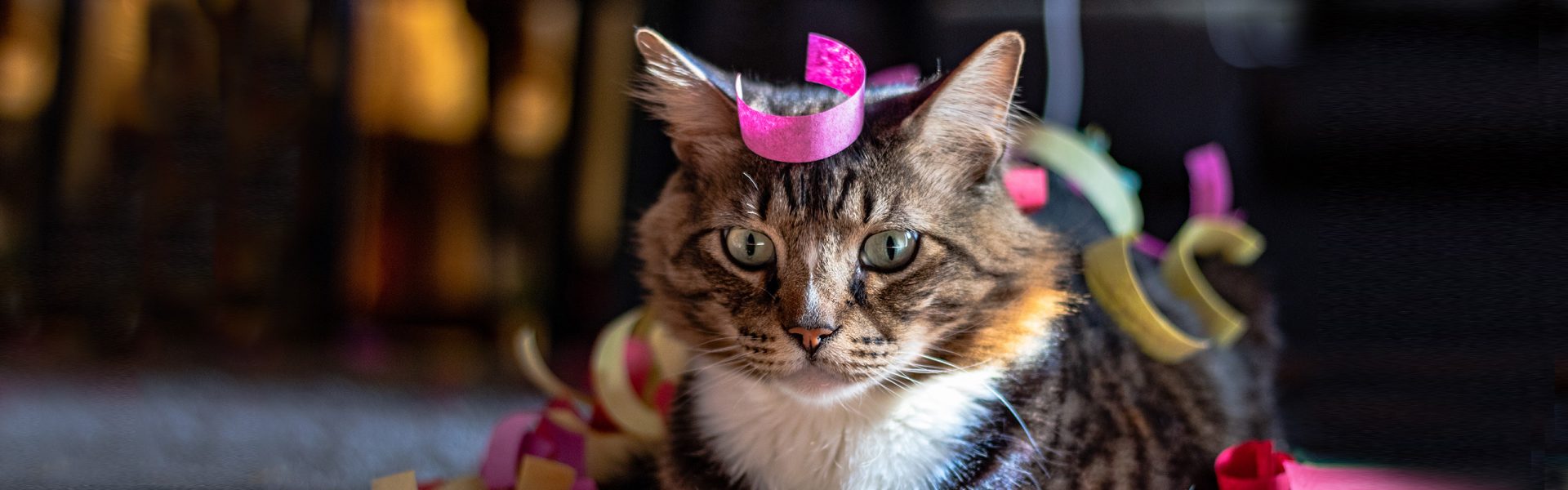 Pěkně pestrá a třpytivá – taková bývá typická silvestrovská výzdoba. Zpravidla je celý byt vyzdobený barevnými papírovými girlandami, balónky a lametami. A na stole je ještě malý ohňostroj a kdoví co dalšího… To všechno kočku láká ke hře a slibuje příležitost pořádně si zadovádět! Může se to však rychle zvrtnout! Omezte proto silvestrovskou výzdobu na jeden pokoj, kde budete mít vše na očích. Zvolte takové ozdoby, které nemohou kočce nijak ublížit, a umístěte je mimo dosah kočičích tlapek – nikdo z nás přece nechce, aby silvestrovské oslavy skončily pro kočku zraněním…