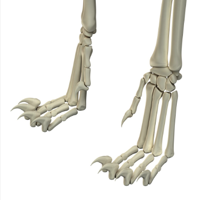 Kostra tlapky je anatomický zázrak, složený z mnoha jednotlivých kostí: Jen samotné zápěstí je tvořeno množstvím drobných, velmi ohebných karpálních kůstek. Přední nebo zadní tlapku, takříkajíc ruku či nohu kočky, pak tvoří záprstní a nártní kůstky. Na konci tlapek jsou kůstky prstů, zakončené drápy. Kočičí kosti se svou pružností podobají bambusu – jsou velmi lehké, ale neuvěřitelně odolné.
