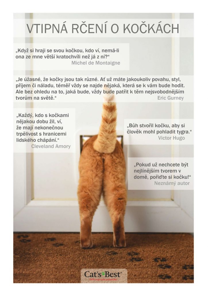 Už jste se dnes zasmáli? Pokud ne, je nejvyšší čas to napravit! Protože smích posiluje zdraví – vaše i vaší kočky. Milovníky koček samozřejmě nejvíc rozesmějí výroky s kočkami a o kočkách, a proto existuje mnoho obzvlášť vtipných rčení o kočkách – a tyhle znáte?