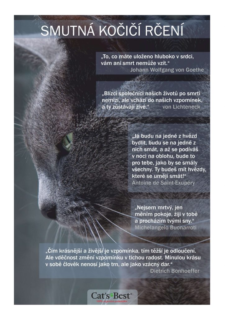 Zemřela vám před nedávnem kočka a moc vám chybí? Nebo o kočku přišel někdo z vašich blízkých či přátel? Zde najdete rčení, která vás a vaše blízké možná utěší a pomohou vám vzpomínat na vše hezké, co jste s vaší kočkou zažili.